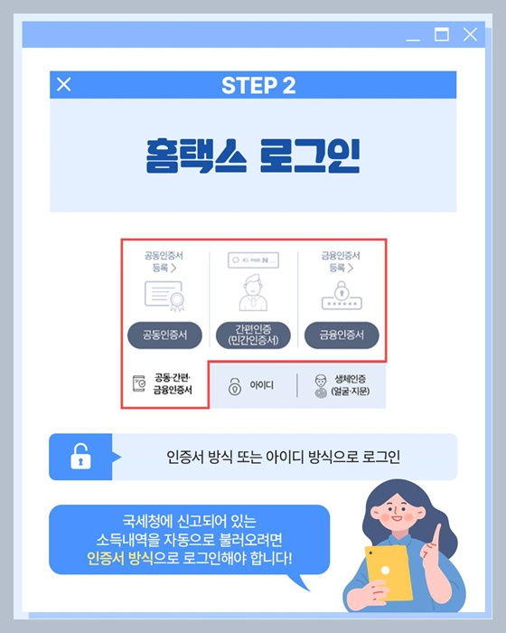 - 홈택스(PC 또는 모바일 손택스 앱)