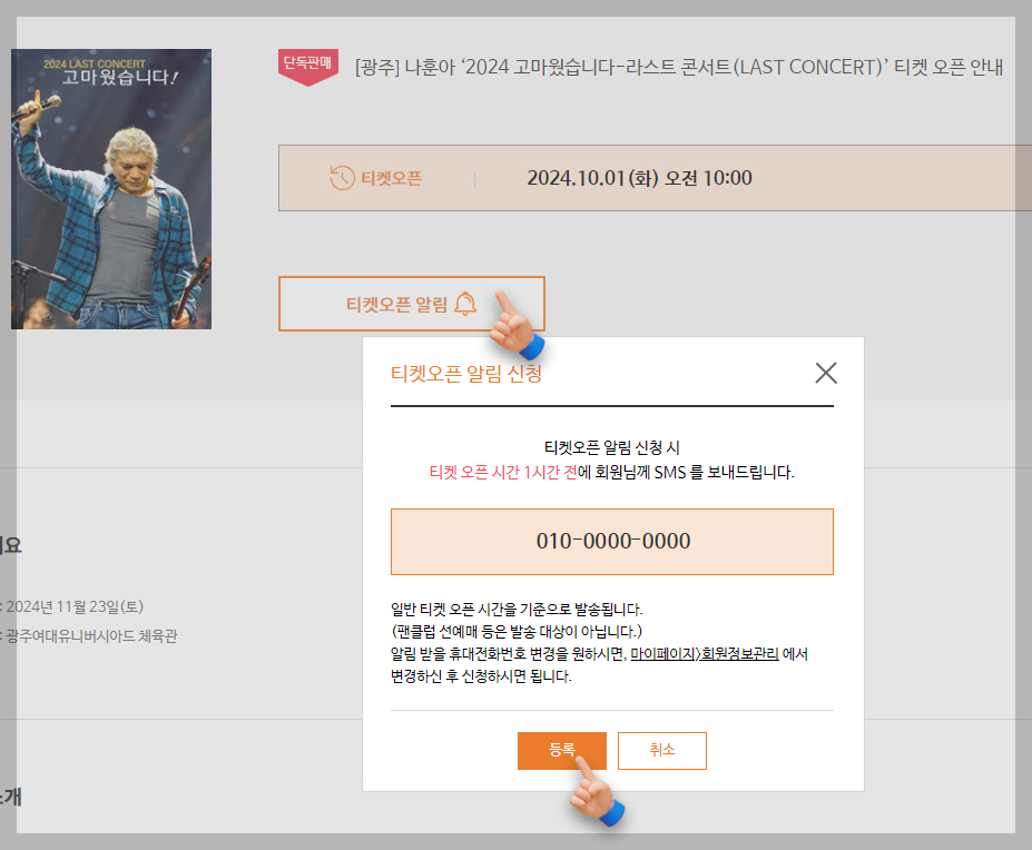 또한, 예매 시작일에 맞춰 예매 티켓오픈 알림을 설정해 두면 좋습니다.