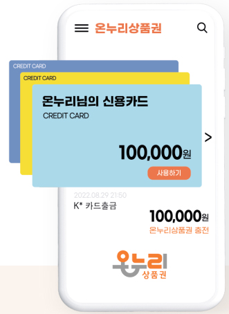 금액충전 후, 실물카드 결제 방식으로 이용 가능한 온누리 상품권