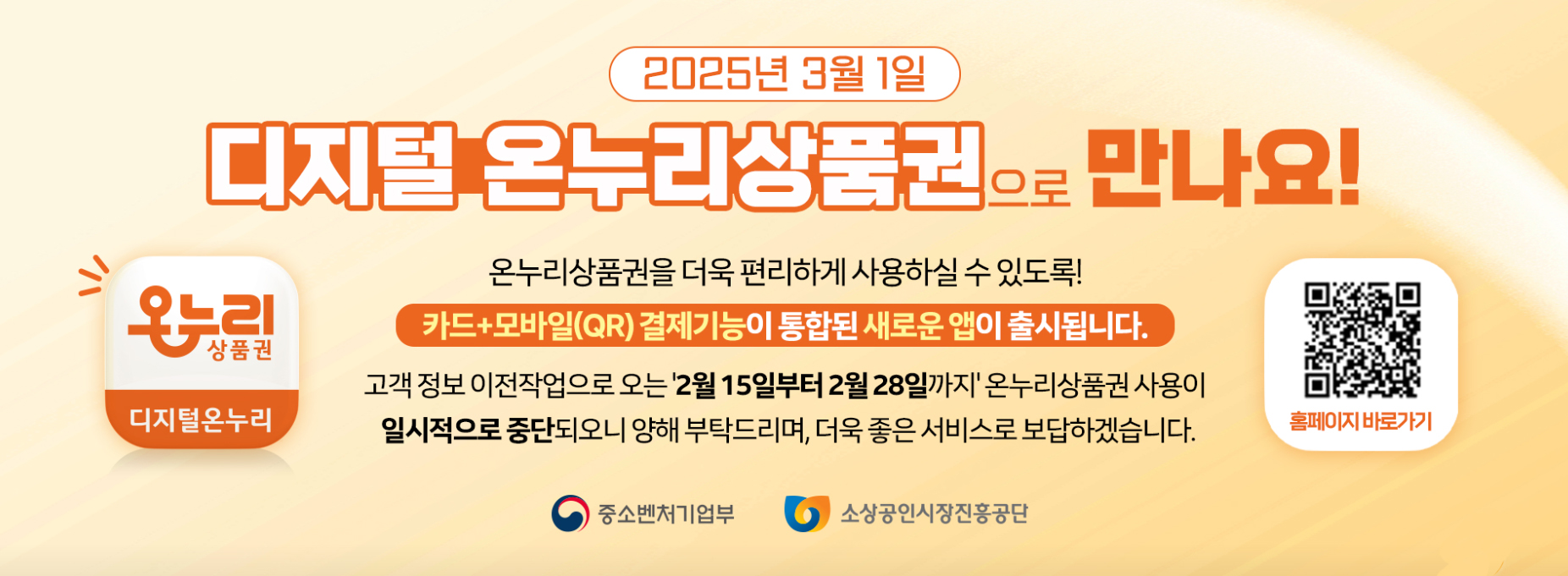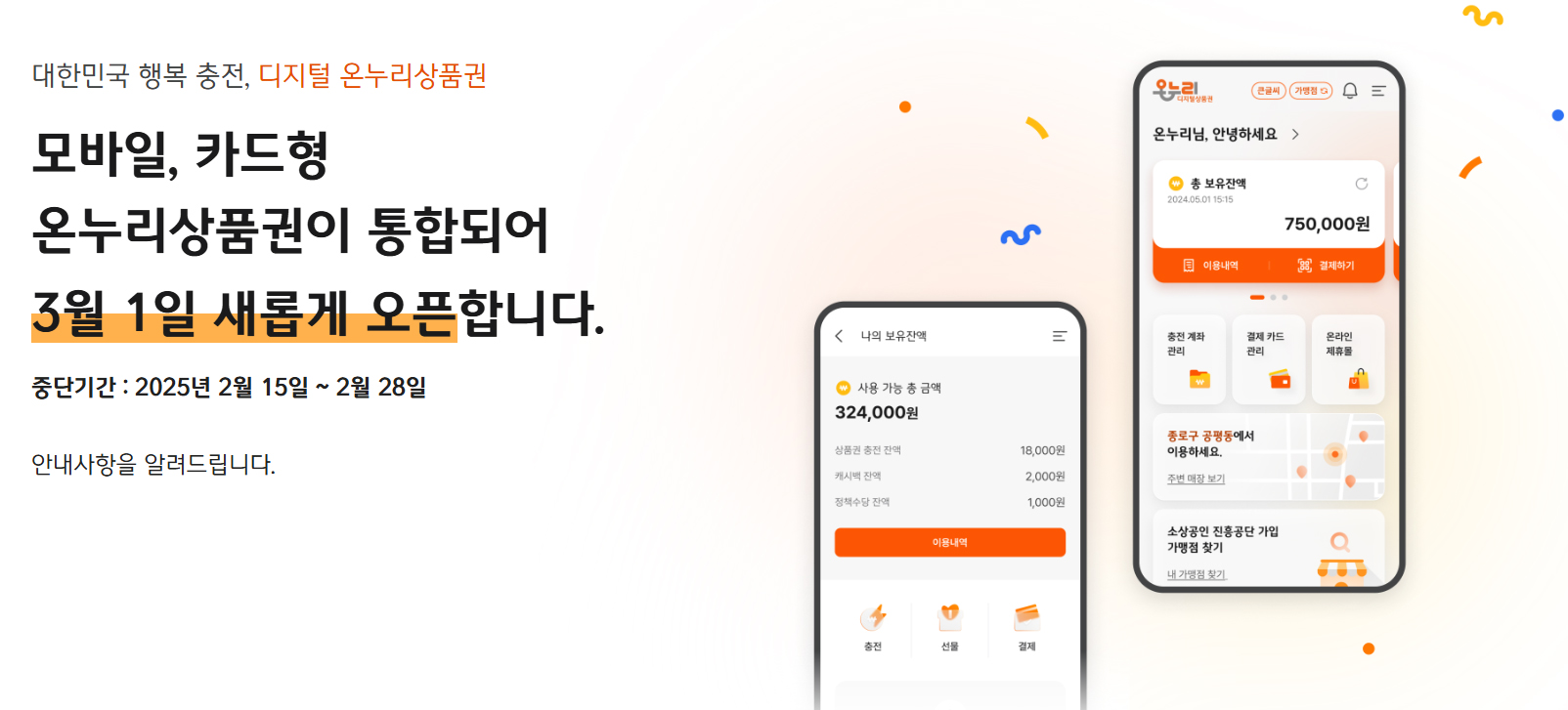 2025년 3월 1일 부터 모바일,카드형 온누리 상품권이 통합되는 온누리 상품권입니다.