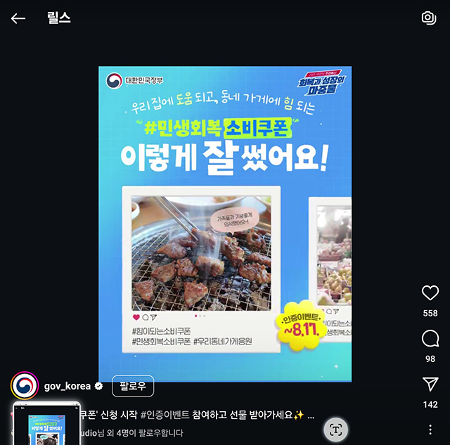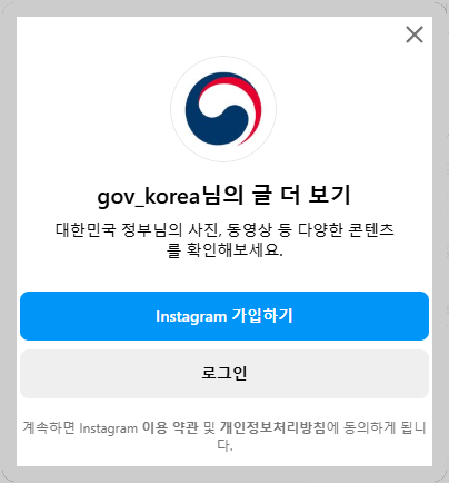 - 대한민국 정부 인스타그램(@gov_korea) 팔로우