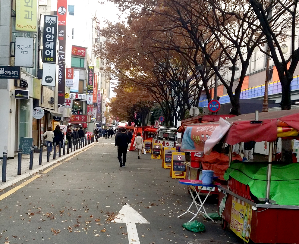 특히 주말에는 라이브 음악과 춤 공연이 서면 거리를 더욱 활기차게 만듭니다.