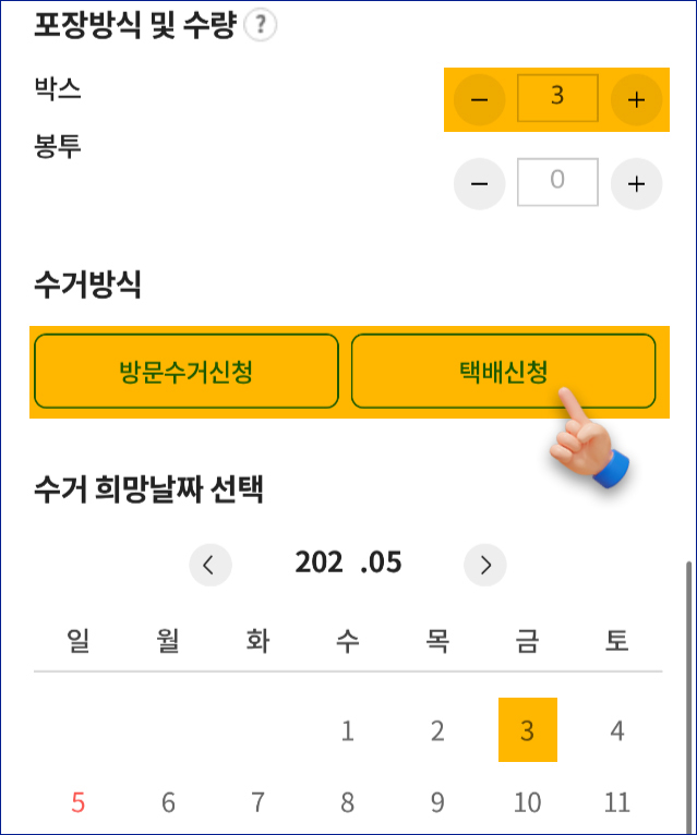 - 접수 시 정확한 박스 수 기입 접수 후 박스 수 수정 불가합니다.