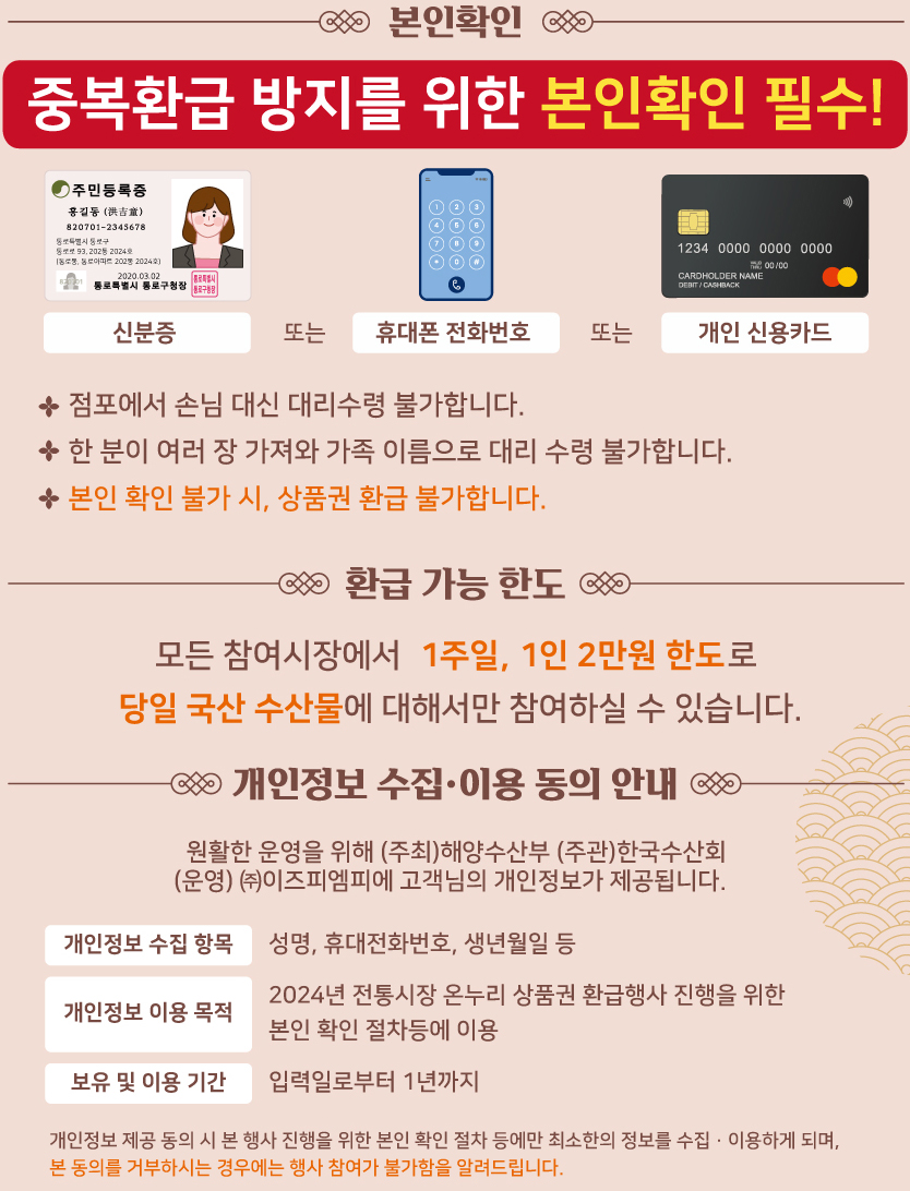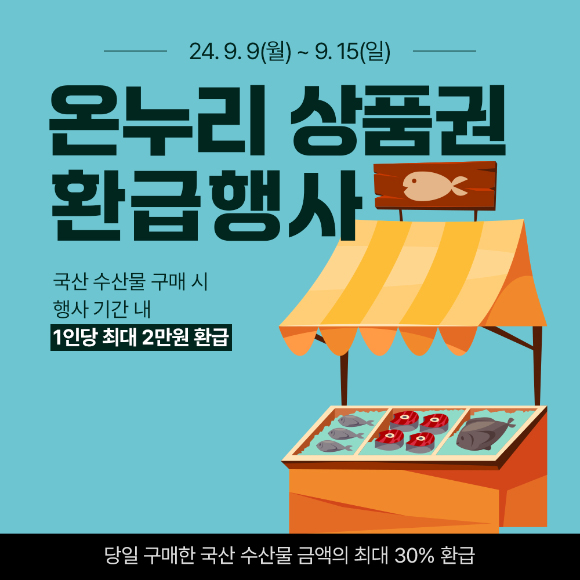 국산 수산물 구매 시 행사기간 내 1인당 최대 2만원 환급