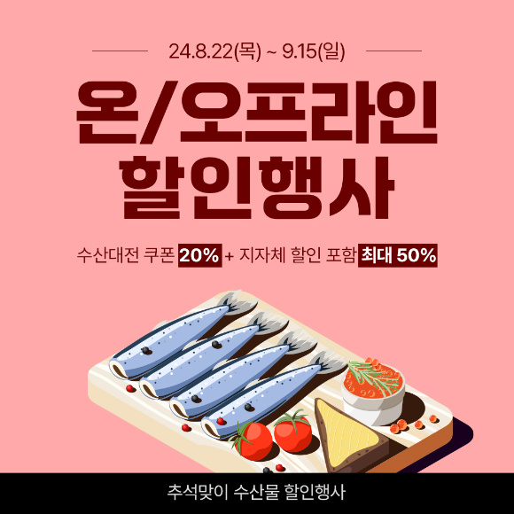수산대전 쿠폰 20% + 지자체 할인 포함 최대50%