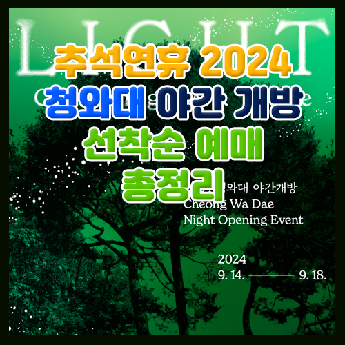 * 2024 청와대 야간개방(LIGHT Cheong Wa Dae)는 한정 수량으로 조기 매진될 수 있습니다.
