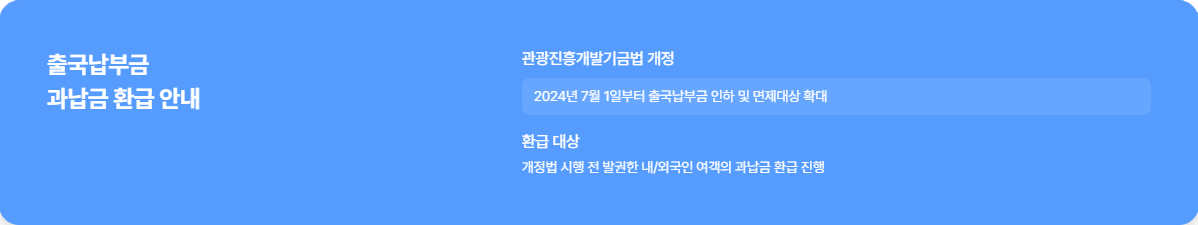 | 환급대상 | 2024.6.30 이전 발권 & 2024.7.1 이후 출국자 |
