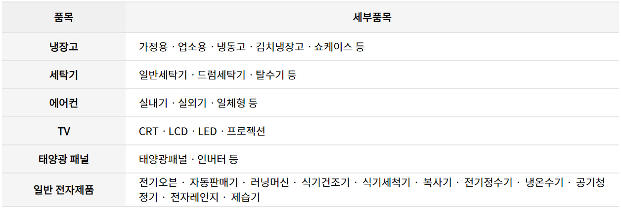 폐가전 무상방문수거 서비스는 냉장고, 세탁기, TV 등 대형 가전제품을 무료로 수거해 가는 서비스입니다.