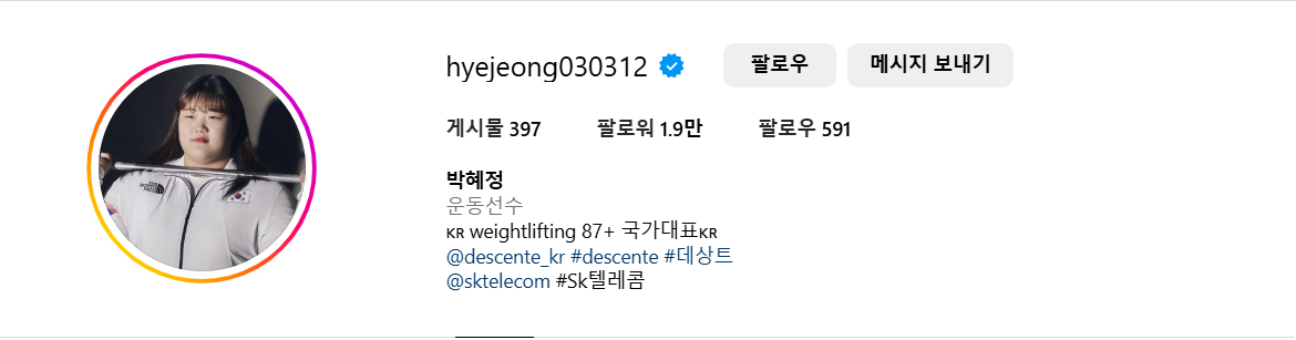 박혜정 선수 인스타!! 응원많이 합시다.